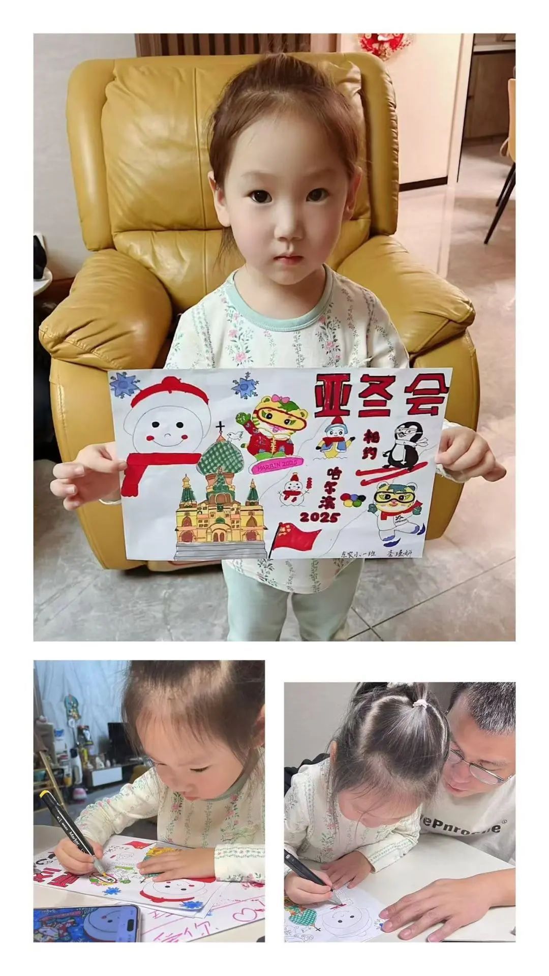 活动中,萌娃们充分发挥想象力与创造力,用稚嫩的双手绘制出一幅幅充满童趣与热情的精美作品。这些作品不仅展现了孩子们天真烂漫的内心世界,更传递出他们对亚冬会的期待与祝福。此次活动不仅丰富了孩子们的课余生活,也在幼小的心灵中播下了热爱运动、关注家乡发展的种子,为即将到来的亚冬会增添了一抹亮色。